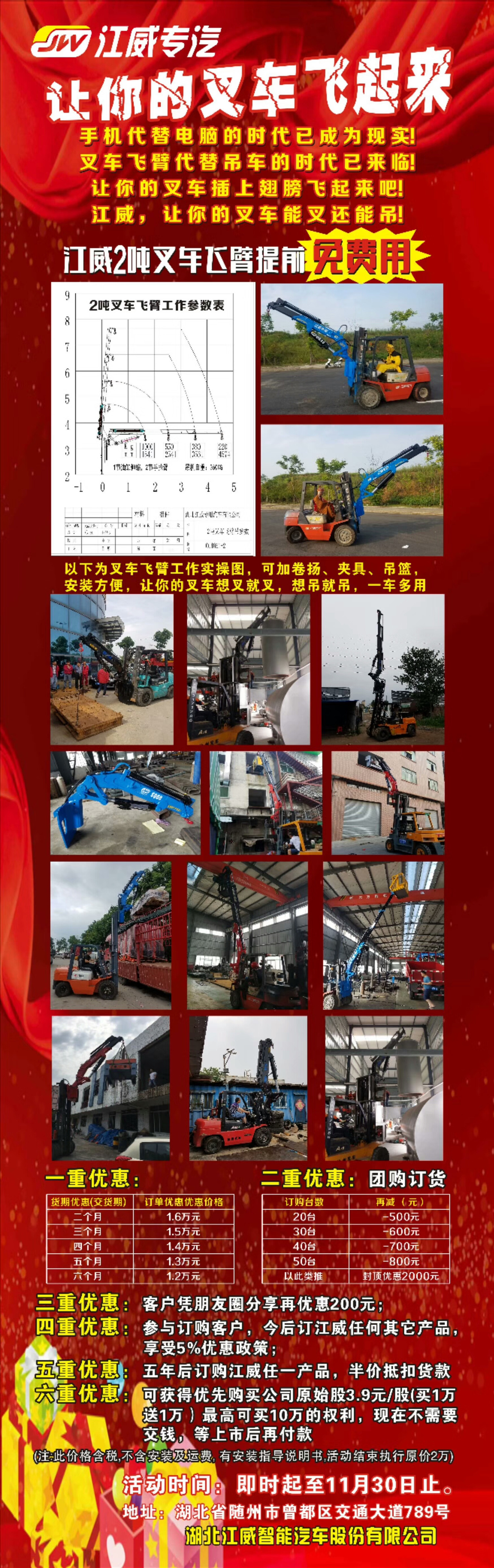 江威叉車飛臂吊認(rèn)購(gòu)優(yōu)惠活動(dòng)