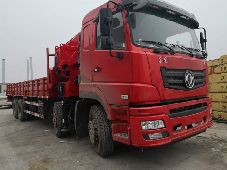 江威30噸隨車吊底盤配置:東風前四后八,玉柴270馬力發(fā)動機,新款T7駕駛室,前橋5噸,后10噸,法士特10檔變速箱,300通三層大梁,帶原廠ABS,取力器,遠程油門。