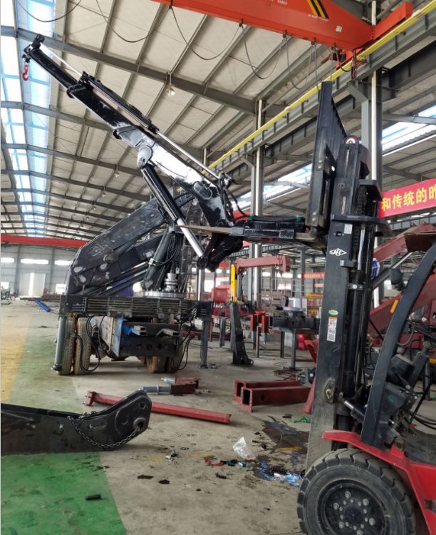3、叉車飛臂吊裝在叉車上,占空間小,叉車仍然可進(jìn)一些吊車無法進(jìn)入的空間作業(yè)。