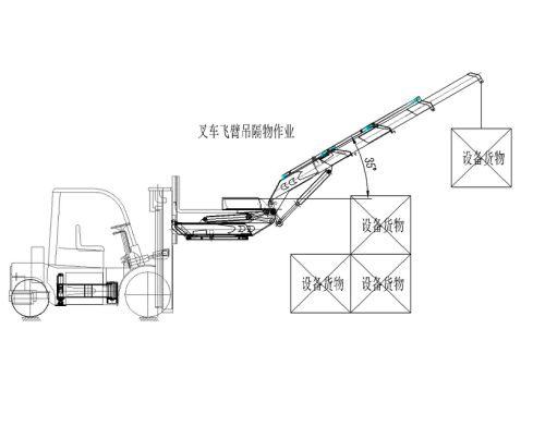 叉車飛臂吊采用多節(jié)課伸縮吊臂。設(shè)備貨物起重可放置制定位置。