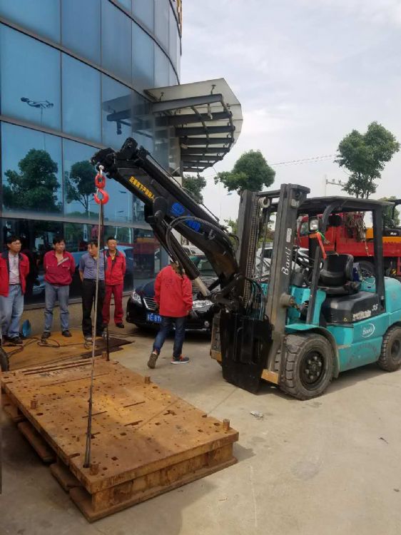 3噸叉車(chē)飛臂吊機(jī),最大工作4.644米,全部升出可吊0.8噸,高度9米-10米。