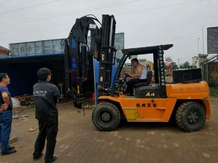 6噸叉車飛臂吊機,最大工作9.1米,全部升出可吊0.8噸,高度13米。