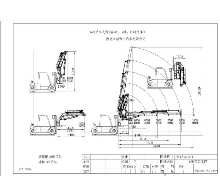 8噸叉車飛臂吊機(jī),最大工作9.1米,全部升出可吊1噸,高度9米-10米。