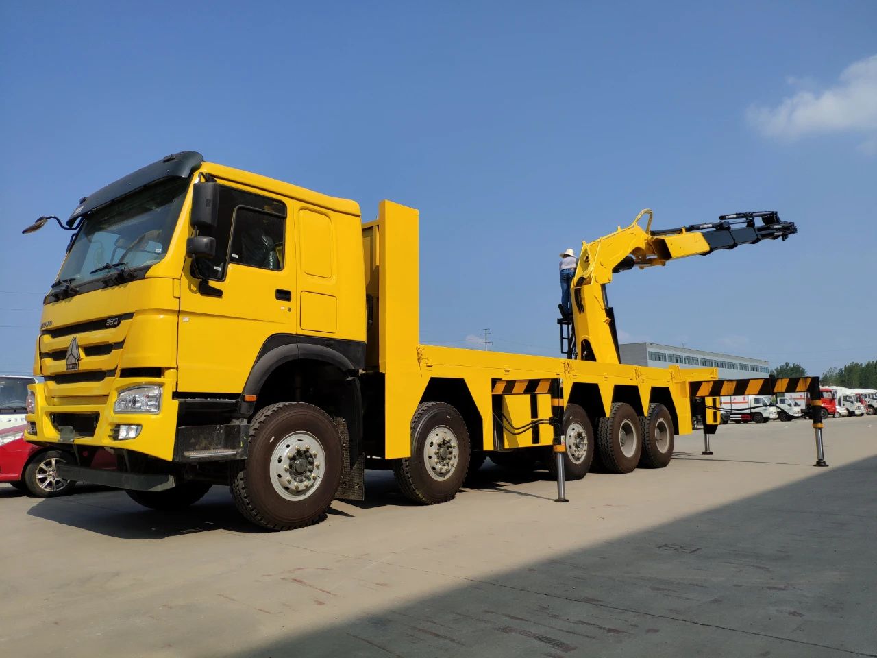 現在隨車吊一般采用新型H型支腿,各支腿可單獨調節(jié)以調整車架水平,支腿跨距大,整機穩(wěn)定性好。隨車吊機可選擇直臂或折臂,有2.3噸、3.2噸、5噸、8噸、10噸、12噸、16噸吊機可選擇,折臂可選用2節(jié)臂、3節(jié)臂、4節(jié)臂、5節(jié)臂、和6節(jié)臂,廣泛運用于各種裝卸、安裝起重作業(yè),尤其適用于野外起重、救險作業(yè)和車站、港口、倉庫、建筑工地、礦山等狹窄場所作業(yè)。