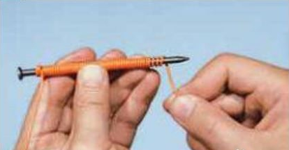 2、用漆包線在鐵釘上岸一個方向并攏纏繞20~60圈(只要你的鐵釘足夠長),注意在導線兩頭留下15~20CM導線做引線,方便通電。