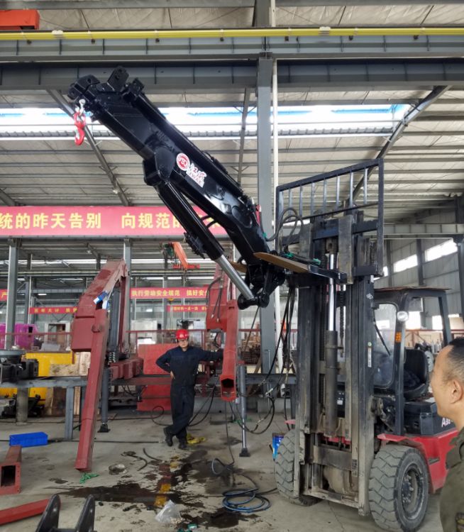 3、叉車飛臂吊裝在叉車上,占空間小,叉車仍然可進(jìn)一些吊車無法進(jìn)入的空間作業(yè)。