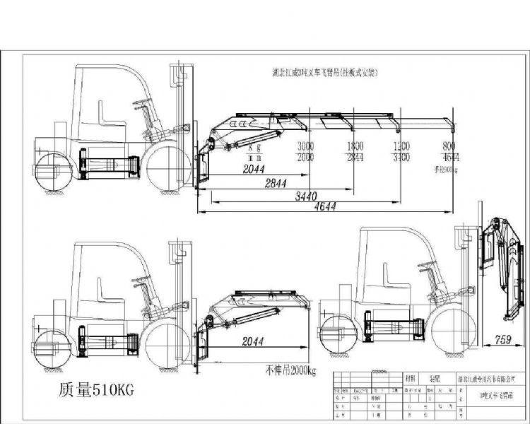 3噸叉車(chē)飛臂吊機(jī),最大工作4.644米,全部升出可吊0.8噸,高度9米-10米。