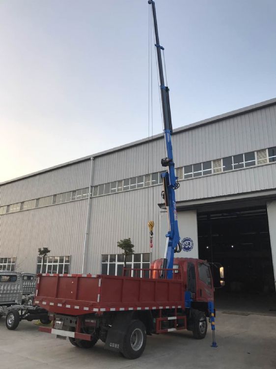 上裝配置:4噸四節(jié)全折臂吊機,最大工作半徑9米,最大起升高度12米,全部伸出可吊0.8噸,全液壓,全回轉(zhuǎn)。
