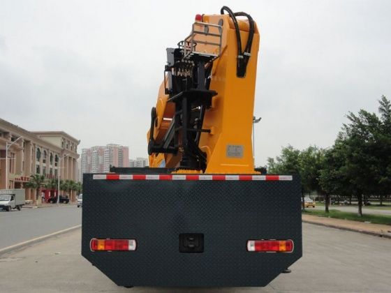 四節(jié)折臂40噸隨車吊:工作半徑10.8米,舉升高度15.3米,最遠起升質(zhì)量7.5噸,全液壓、360度全回轉(zhuǎn)。