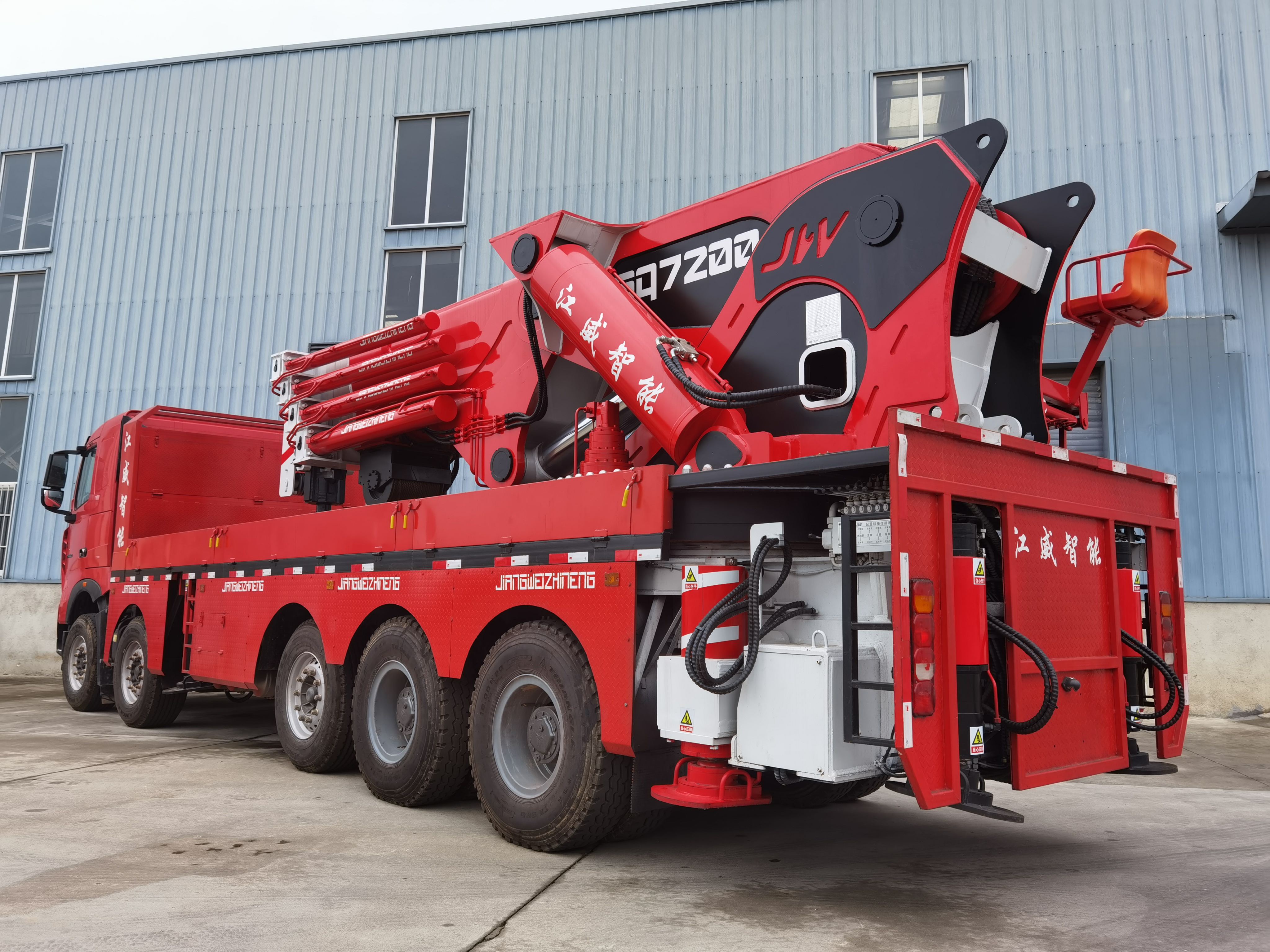 江威7200自問世短短數(shù)月市場(chǎng)使用數(shù)十臺(tái),訂單不斷,成熟穩(wěn)健使用。匹配底盤重汽T7駕駛室,440德國曼發(fā)動(dòng)機(jī),前4后10。整體全加固加強(qiáng)型大梁。吊設(shè)備,吊橋梁的最佳最大選擇。整體底座設(shè)計(jì),整體加工更保護(hù)底盤大梁;剞D(zhuǎn)馬達(dá)中柱墻外設(shè)計(jì),更加大轉(zhuǎn)動(dòng)扭距,更加加大剎車力距,更平穩(wěn)。